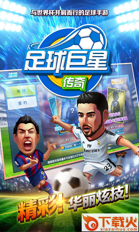 足球巨星传奇,一款精彩的足球竞技手游。游戏开创一个3D真实的足球世界,在这里你将化身足球经理人,招揽各个明星球员,建设你的足球赛场,升级你的足球战队,随时和其他玩家在线PK!...
