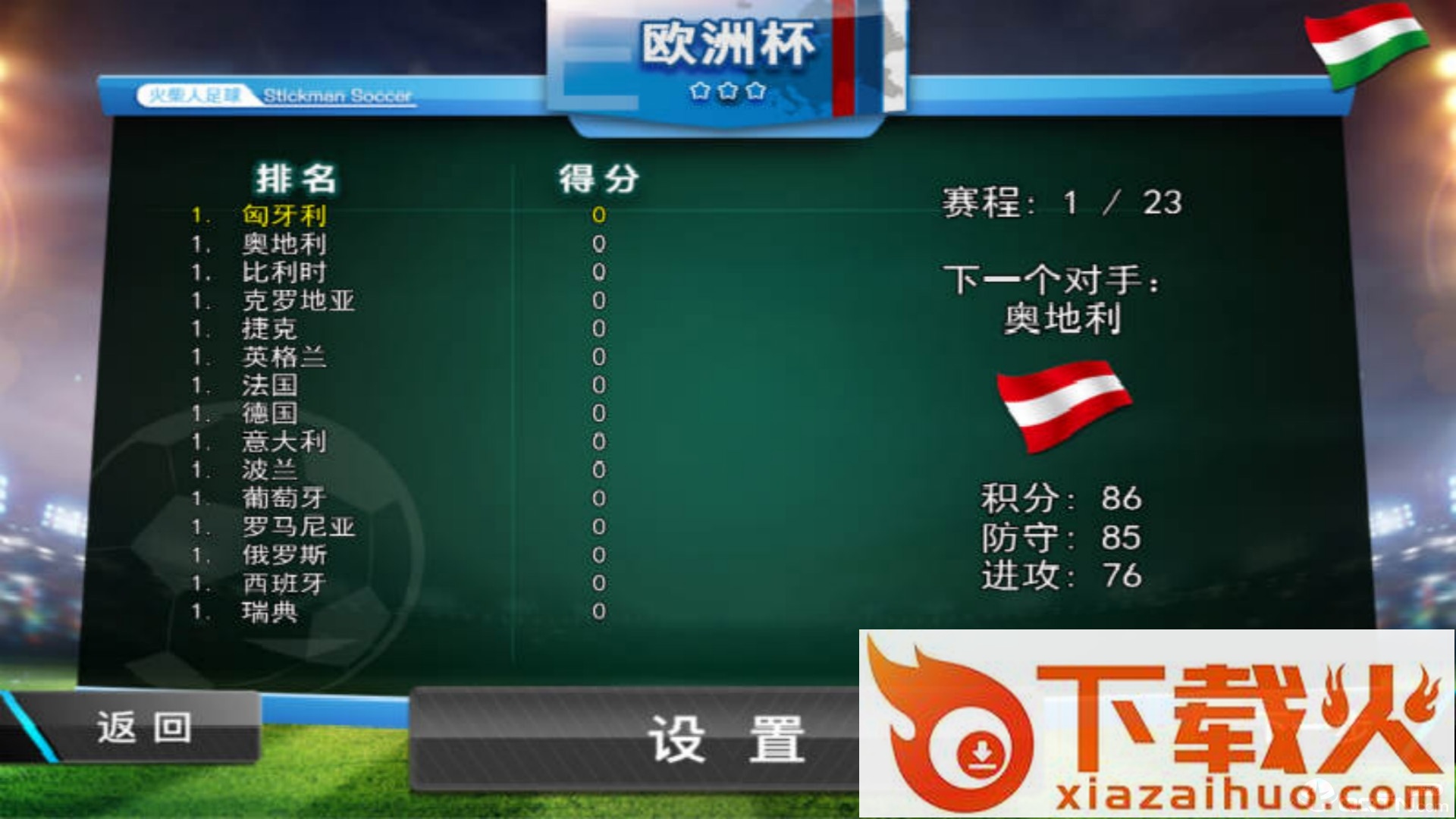 1、以火柴人为主体的足球竞技游戏,真实再现足球竞技的场面;