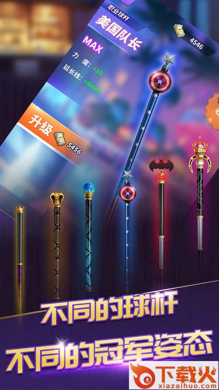 1、各种炫酷造型的球杆等你来收集,越珍贵的球杆收集的难度越大。
