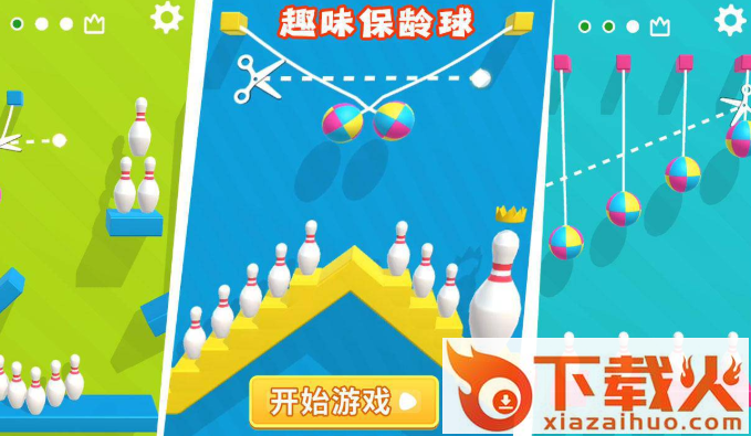 趣味保龄球这款手机游戏,一改传统的保龄球投掷模式,这里通过更加智慧的剪绳子方式来击倒所有的保龄球,每一关都有着不同的场景,有的需要借助惯性,有的需要了解物理原理,非常具有考验呢。