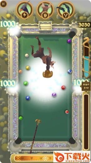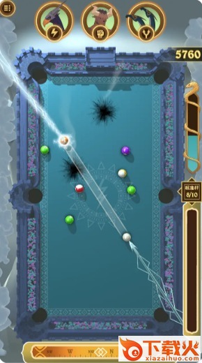 在这张充满挑战的台球战场上,玩家除了需要用高超的台球技巧在一定次数内清场球桌,还可以通过击中魔法药水,来获得英雄技能!