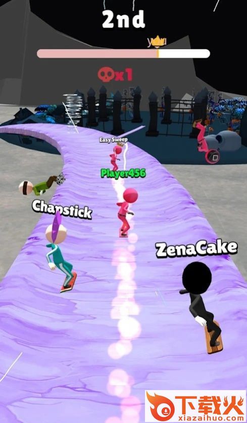 2、在不同的区域内任意滑行,向前灵活躲避,保持平衡不摔倒,与众多对手竞争。