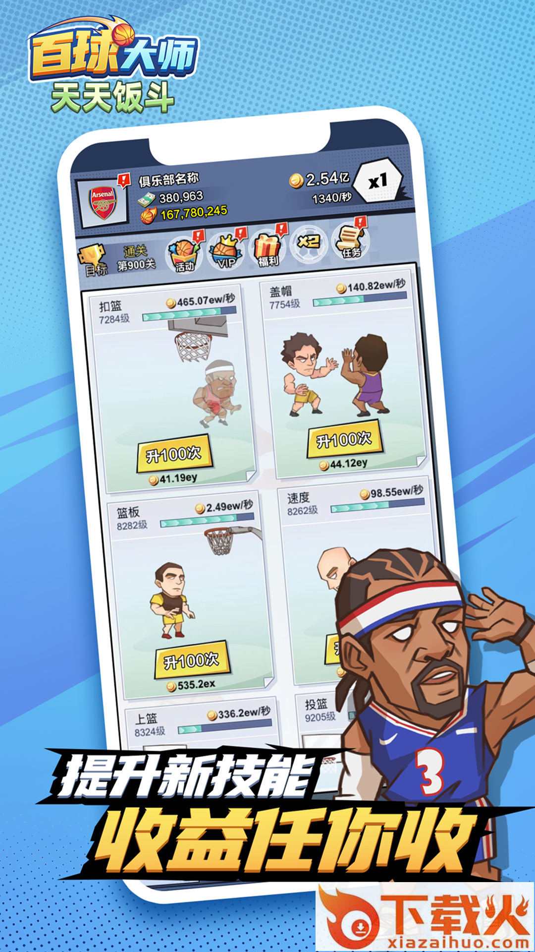 休闲经营篮球游戏,游戏画风风趣幽默,玩法轻松护肝,在这里你将扮演一名俱乐部老板,经营俱乐部,为了球队夺冠,签约传奇球员,提高球员能力和球员们一起荣登冠军的宝座。