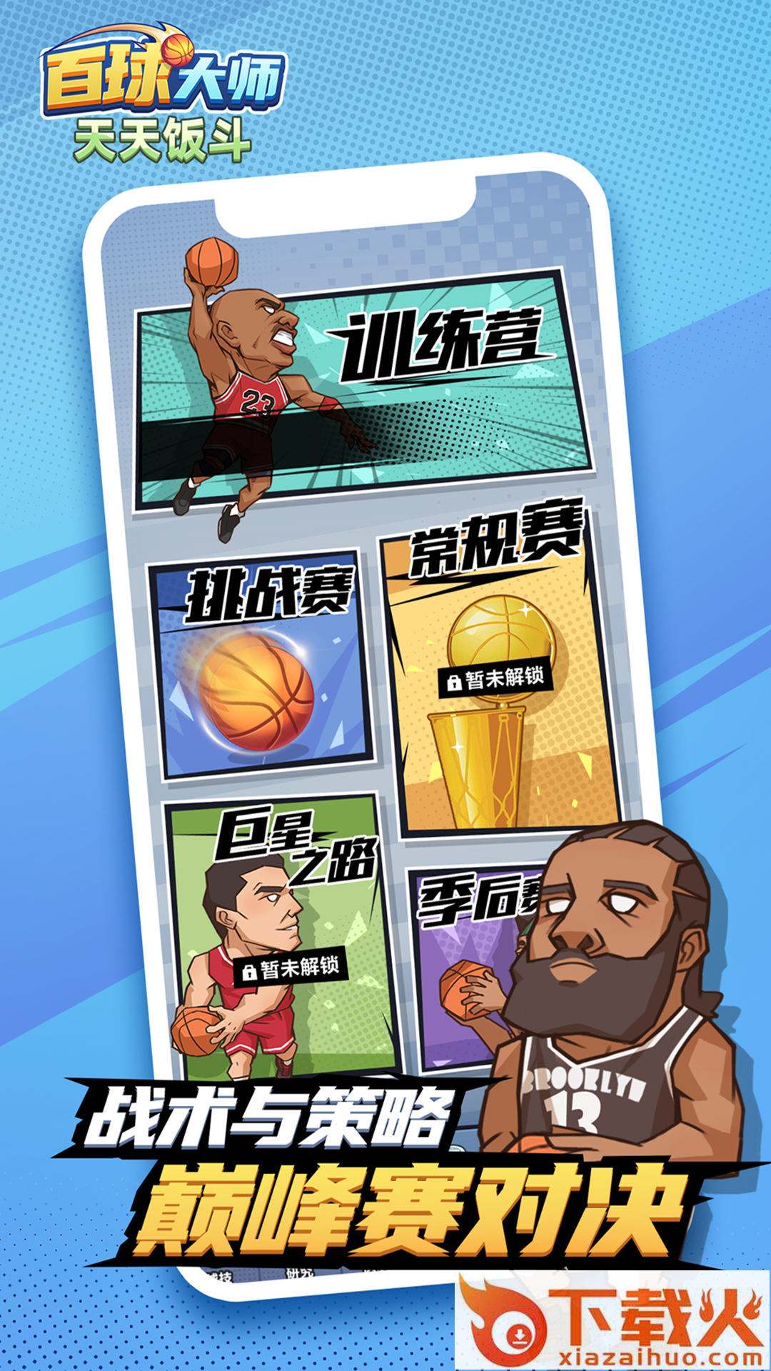 天天饭斗,卡通漫画风格的休闲篮球游戏。游戏采用街头篮球玩法,超多顶级球员招募签约,打造你的梦之队,练习篮球技术,完成你的投篮瞬间吧。...