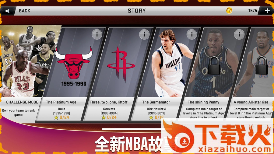 进行5个全新NBA故事模式游戏,细细品位着名NBA球星和球队的历史。