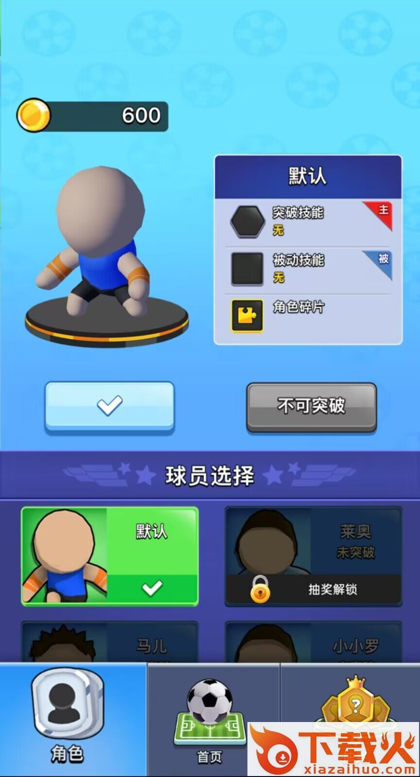故事模式1:玩家单独参与游戏,与其他高校的足球队一决雌雄,玩家只能选择默认的热血队参加。