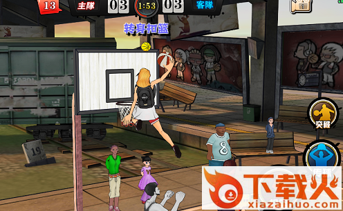 游戏采用了虚拟摇杆+技能按键的操作模式,有三个技能键(会根据玩家在球场的区域自动变化出合适的技能),这相比PC或主机上的篮球游戏,在技能方面相对简化了不少,也降低了新手上手的难度。