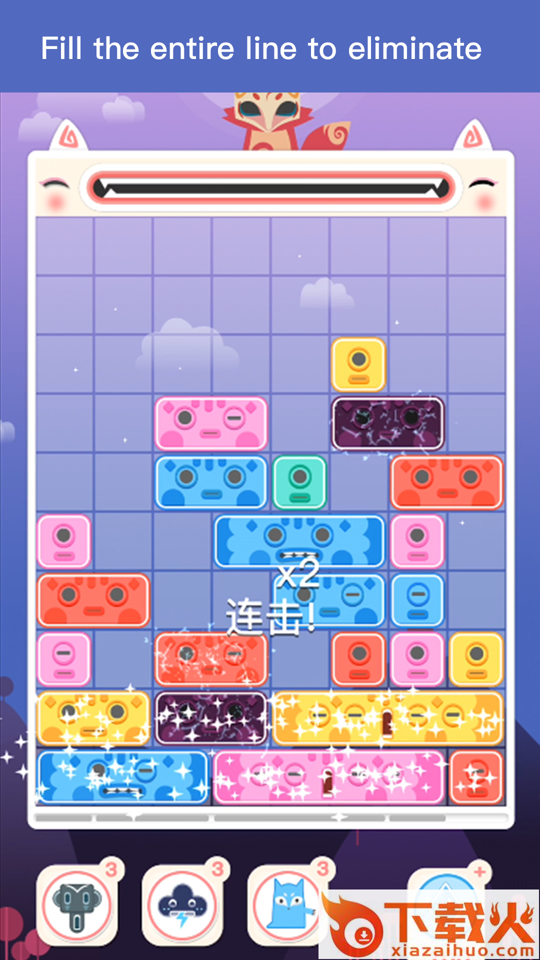3、多种趣味道具,帮助你快速闯关(雷电消除,快速破块、方块爆裂)!