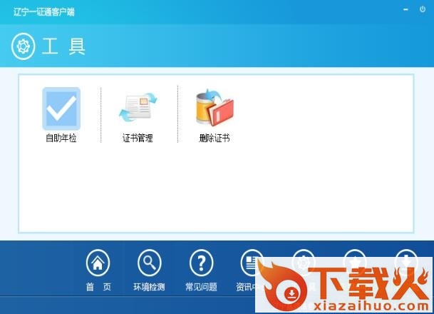 “一证通客户端”工具提供三个功能:自助年检,证书管理,删除证书。