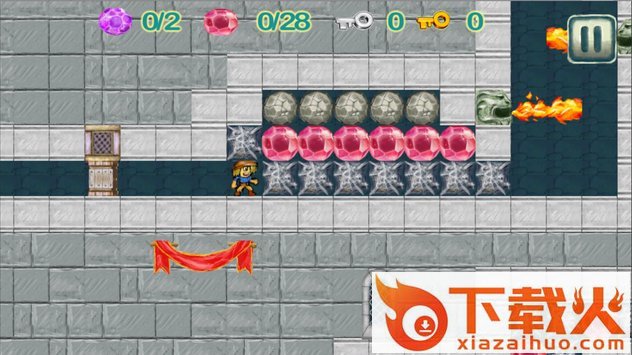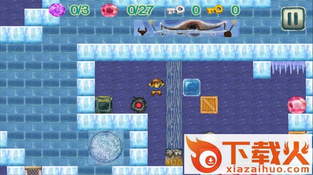 这是一款和GAMELOFT钻石狂潮大作类似的作品,游戏的主要目标就是移动石头,收集钻石,在这个庞大的寺庙中冒险,解决难题。游戏下方界面,从左向右依次为指南针,生命,血槽,紫色钻石数量与红色钻石数量。拿到足够的钻石即可过关,但是也能收集全部钻石达到三星过关。