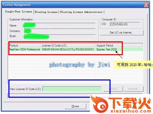 4、把上图红方框内生成的注册码,拷贝到下图的“New License ID Code”内,点击“AddLIC”就大工告成了。