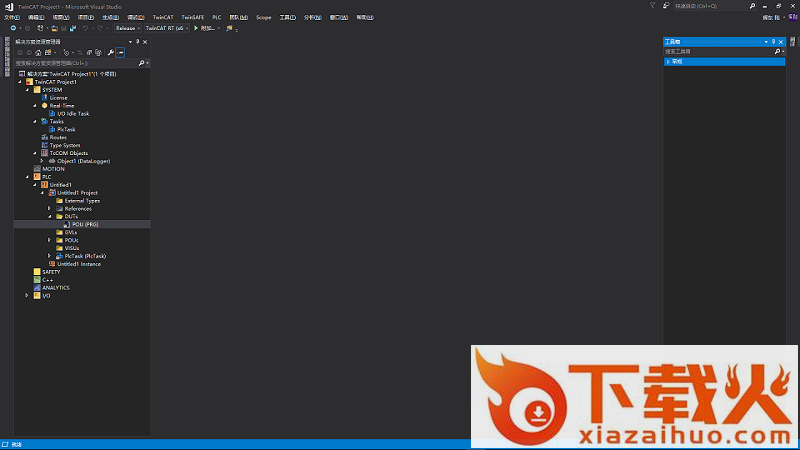 装好VS2017并激活后,在绿色资源网下载twincat 3 的安装包并安装 ,基本是傻瓜式的,它会自动选择嵌入到VS2017,安装完成后重启,打开VS2017就能看到twincat 3 已经嵌入进去了
