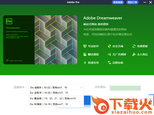 dreamweaver助手是adobe dreamweaver的辅助软件,adobe dreamweaver作为非常知名的网页制作软件,版本众多,dreamweaver助手里面包含了dw的16-22全版本、19-22的黄金版、16-18的标准版等,可以帮助用户快速下载和激活需要的版本!