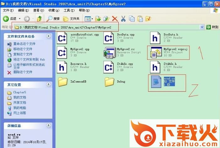 在VS2002中的位置:acad.rx文件 与。vcproj 处在同一目录