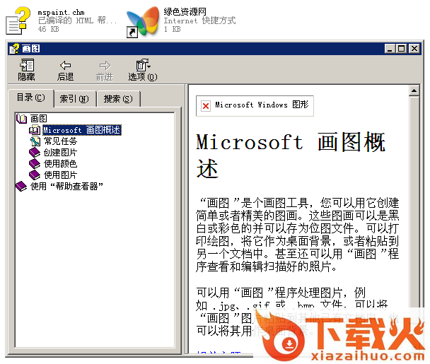 mspaint.chm文件是微软windows自带的画图软件的帮助文档,默认的存储位置是:C:\WINDOWS\Help文件夹。使用软件能让你在电脑中轻松的一键进行画图。喜欢就来绿色资源网下载吧!