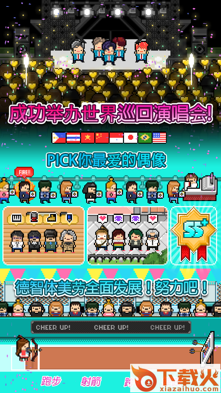 偶像天团养成记手游是一款主打休闲养成玩法的游戏,并且采用了开罗的像素画风,至于玩法方面,这游戏有150名偶像练习生,可供选择,而你则是全员经纪人,自由搭配各组成员数量,要是能如期举办世界巡回演唱会,那可就厉害了。