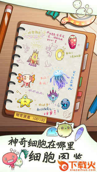 细胞日记是一款收集向放置休闲游戏,游戏的画风非常治愈,玩家通过将各种可爱的孢子细胞放入 培养液中,培养和收集光怪陆离的细菌生物,并将实验结果记录在日记中,随时观赏菌菌们的小故事。