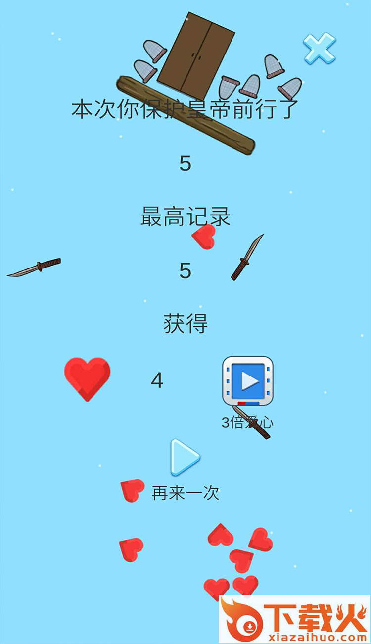 2、途中会有各式各样的明枪暗箭来袭击我们的皇上,玩家需要左躲右闪;