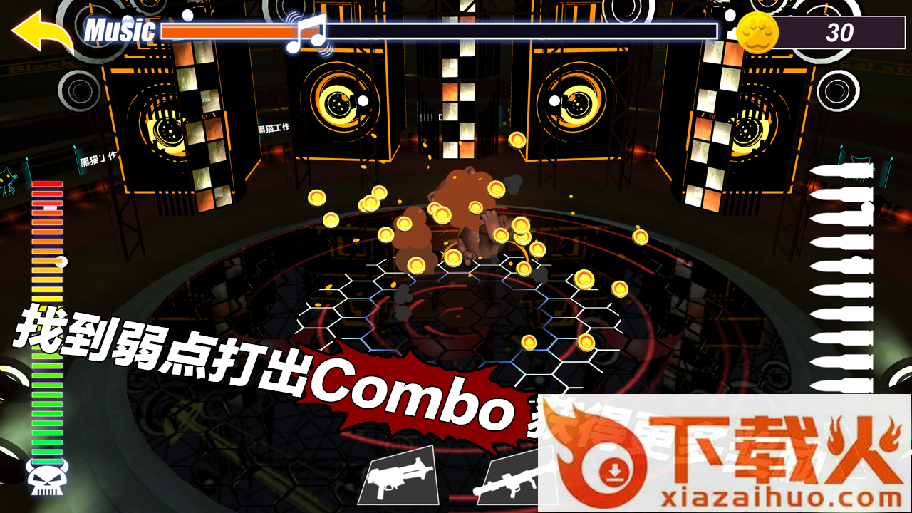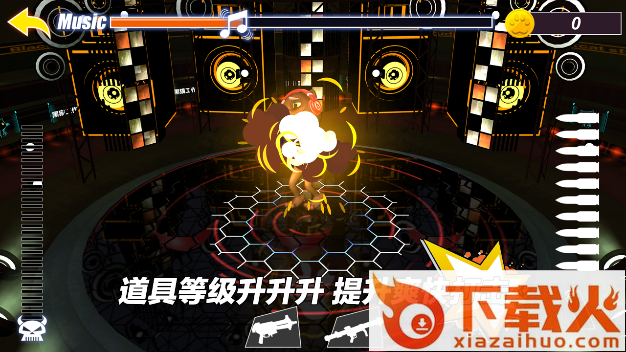 小黑猫是个有梦想的舞者,TA不希望被你打断,所以穿上了奇怪的装备。这时,你会发现即使是火箭筒也就像是挠痒痒。这时候就是升级装备的时刻了。