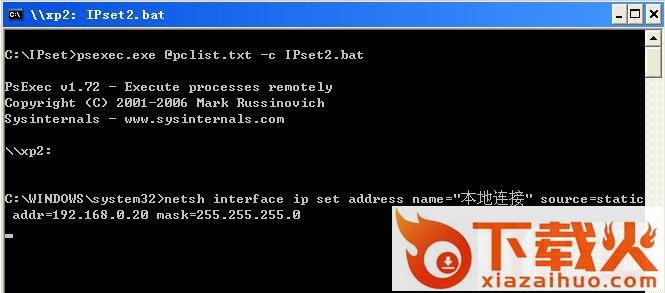 IPset.bat :把psexec.exe的命令写入一个批处理文件内可以方便修改、运行。其中-c开关符表示将IPset2.bat复制到远程主机后运行。