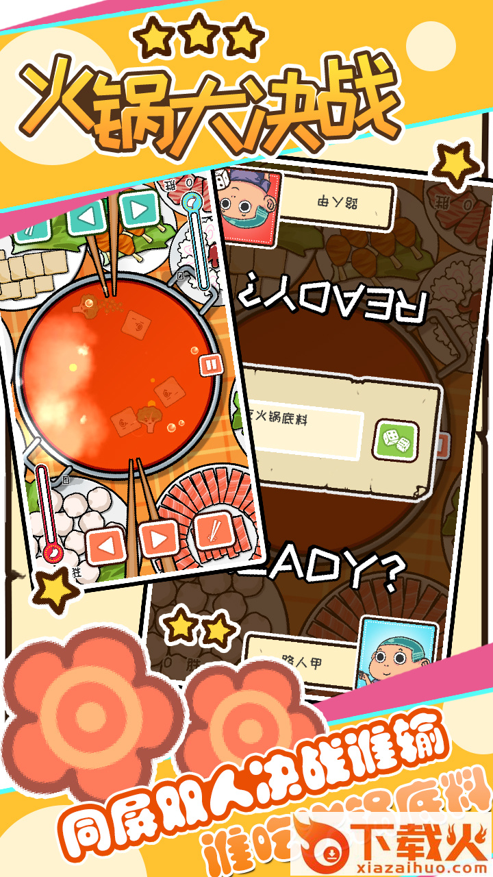 火锅大决战是一个以火锅美食为主题的竞技对抗游戏,这里提供火锅大决战官网版本下载,游戏轻松有趣,适合朋友情侣之间对战,玩家们需要使用筷子在火锅中抢夺美食,在线双人开撕,不用顾得形象了,谁可以得到更多的食材。