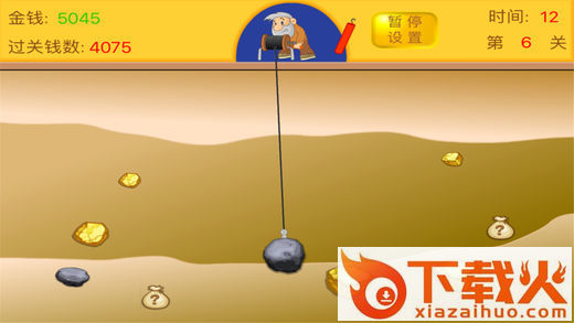 游戏画面精美,流畅,玩法简单,钩子会不断地来回摇摆,当瞄准好目标时,点击屏幕即会释出钩子,去抓取金块。每一关都会有一个设定的得分目标,当分数达到该目标值时即可进入下一关。