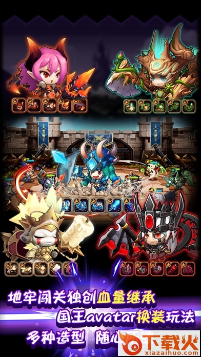 经典五人小队再现,坦克、输出、治疗协作战斗,战中掉落多彩职业气泡球,收集可积攒能量释放大招。单层地下城可选择25位上阵英雄,血量消耗完的英雄将回屋休息。快去探索地下城,追查地狱三头犬的下落吧!