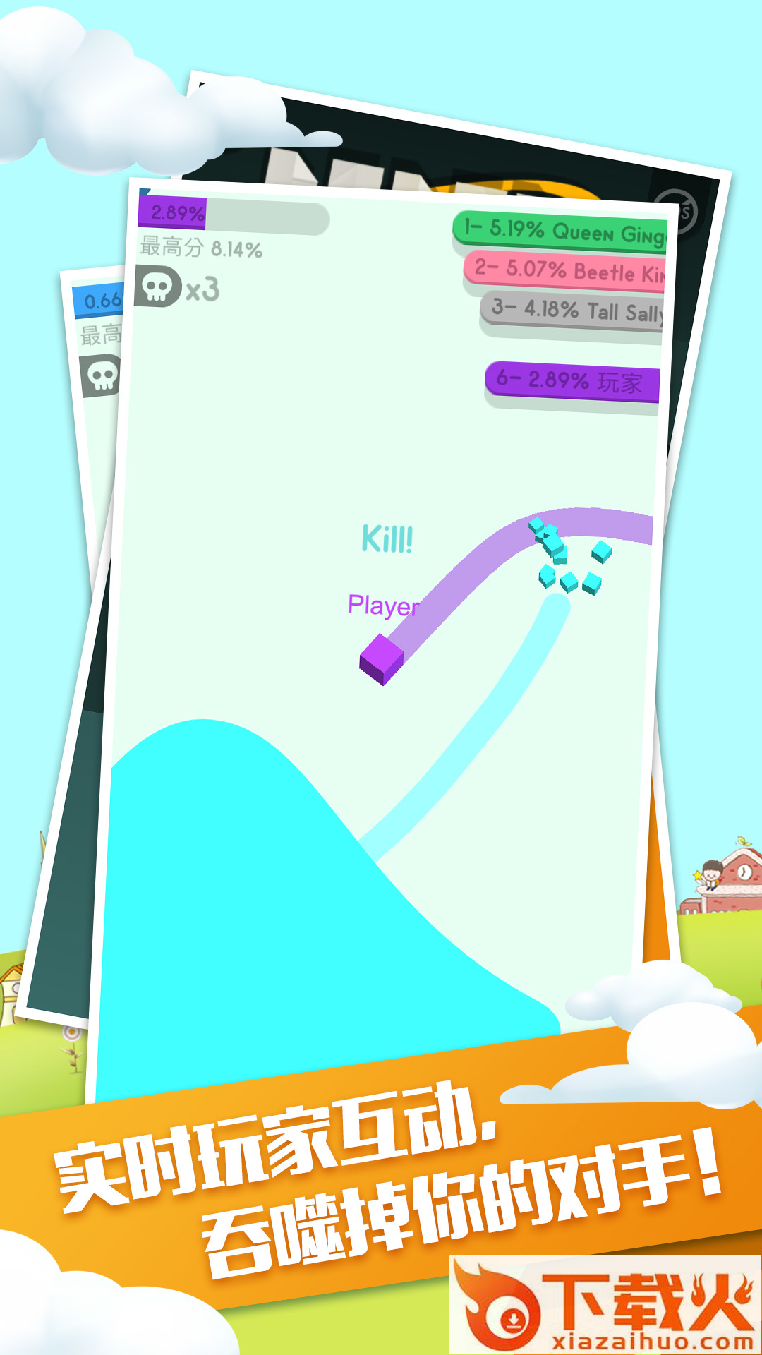 2、自由的竞技对决,灵活的控制着自己的纸团去圈住更多的地地。