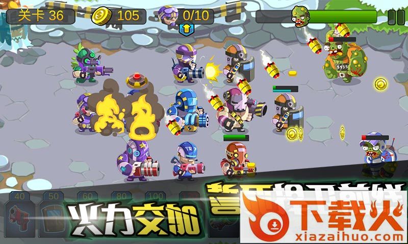 僵尸行动队,一款画风清新的休闲塔防小游戏。在这里玩家将率领精彩的僵尸行动队,行动队的每个英雄都有着独特的技能属性,多样武器道具轻松获取,自由组合搭配,轻松消灭一切僵尸!