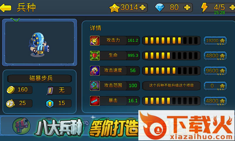 每个士兵都有不同的技能和力量,组成一支强大的队伍可以击败一切。现在,让我们带领你的小队来杀死僵尸并拯救城市。此外,你也有不同的技能来帮助你打败僵尸。你可以用你的黄金,宝石来升级你的士兵,获得最可怕的技能。