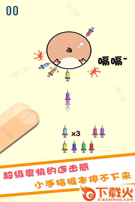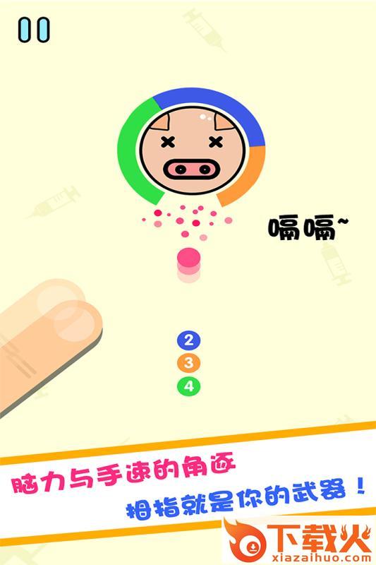 2、操作简单易玩,只需要在合适的时机将针筒射向小猪,让针筒相互不碰撞;