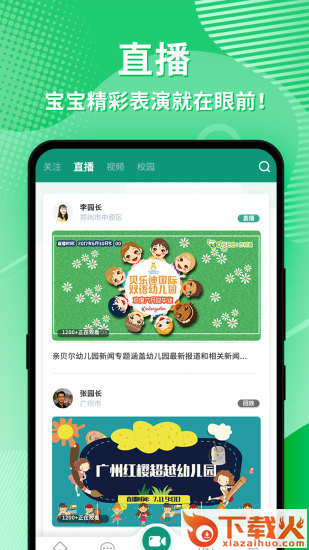 园所生活:通过精彩小视频、照片,真实反映宝宝在园的生活状态,家长可以赠花评论形式表达对老师辛勤工作的敬意。为孩子幼儿园生活留下满满印记,并可分享到其他平台给亲友。