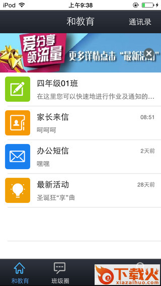 掌上和教育是为和教育用户量身打造的免费手机客户端,集作业通知、办公短信及班级空间为一体,将家校联系装进口袋,随时随地,架起教师、家长、学生的沟通桥梁。江苏校讯通ios版功能特色:1、将家校联系装进口袋...