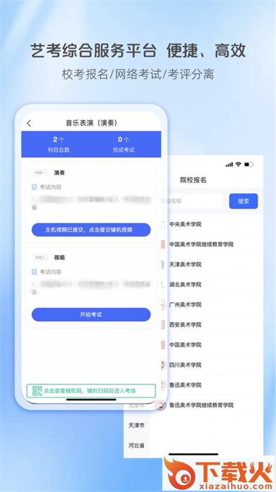 艺考升app是由中央美术学院,天津美术学院,中国美术学院,景德镇陶瓷学院,湖北美术学院 等院校联合举办的网上报名软件!主要功能包括高考艺术生的基本信息填写、肖像信息采集、在线报考院校、选择报考专业志愿并交纳报名费用,考生可以对已报考的院校进行方便的查询和日程安排,考生无需再千里迢迢到院校进行现场确认,可以直接在家进行线上确认考试,打印出自己的准考证;艺考升系统支持导航应用,导航到报考考点。