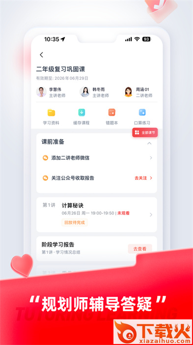 途途课堂致力于为6-15岁孩子提供小学一年级至初中三年级全部学科的课程及服务。采用“授课+辅导”的在线直播双师模式,主讲老师直播授课,讲解核心知识点,二讲老师辅导伴学,为孩子答疑解惑。途途课堂通过大数据、人工智能与在线教育相结合,围绕“大班主讲,小班二讲,个性体验”,持续研发和迭代在线直播课程产品,为中小学生提高学习效率以及教育普惠持续努力。
