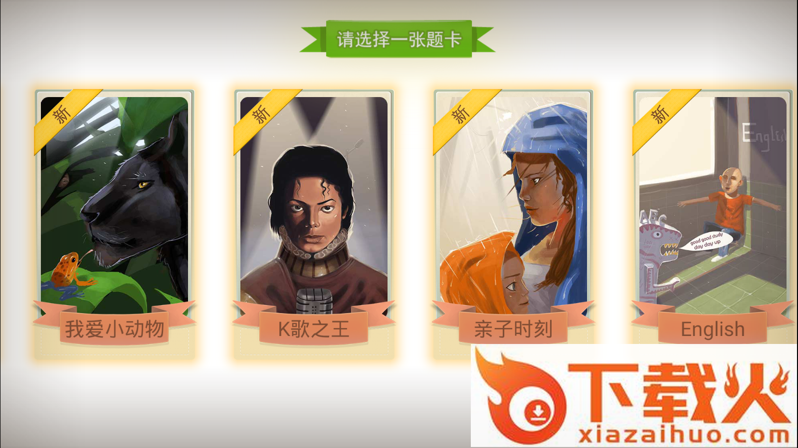 进入游戏后,看到的Q版萌系画风,制作精良的游戏界面,不同类别的题卡选项逐一展现在眼前。