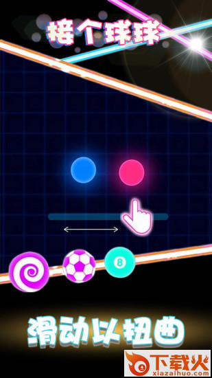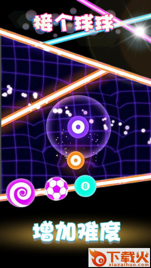接个球球游戏应该是前段时间超火的球vs激光的本土化产物,玩法很简单操控相同颜色的球球来消除激光,游戏有着鲜艳的霓虹色调,玩家上手容易,但想要获得高分还是很有难度的,其次作为腾讯站台的休闲游戏,好友肯定都在玩。