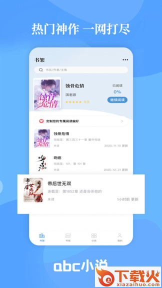 abc小说是主打高质量内容的免费阅读神器,内容涵盖言情小说、玄幻小说、都市小说、仙侠小说、体育、历史、科幻、是追书必备的阅读软件!