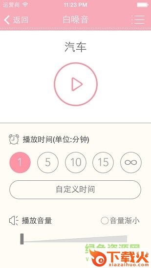 白噪音安抚法:提供5种白噪音:嘘嘘声、风筒声、吸尘机声、汽车声、水声;带有声音渐小、循环播放、定时关闭功能;