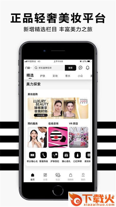 sephora丝芙兰ios版让你可以在这里买到各种轻奢的美妆产品,线上为你分好了详细的类别,可以让大家挑选自己想买的产品。同时线上会有各种大牌美妆活动,你可以选择参与进去。首页也会为你个性推荐产品,根据浏览的产品推荐类似的,欢迎有需要的朋友下载使用!