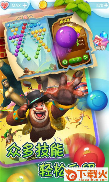 2、泡泡龙游戏我们见多了,但像《熊出没之泡泡大战》一样拥有超丰富关卡类型、超新颖玩法、超有趣道具、超Q萌熊大熊二角色的泡泡龙游戏,相信你一定没见过!