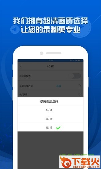 1、支持横屏、竖屏录制,悬浮窗录制,标清、高清、超清视频画质可仍您选;