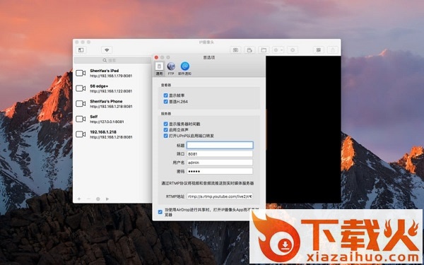 IP摄像头可以把你的设备变成包含双向音频支持的无线IP摄像头并用于安全监控,你可以使用电脑上的浏览器查看,当然IP摄像头和iOS版IP摄像头也可以查看,支持与iOS版IP摄像头通过AirDrop协同工作。它支持基于运动检测的自动录像,所拍摄的录像还能自动上传到FTP服务器,并通过邮件通知您!