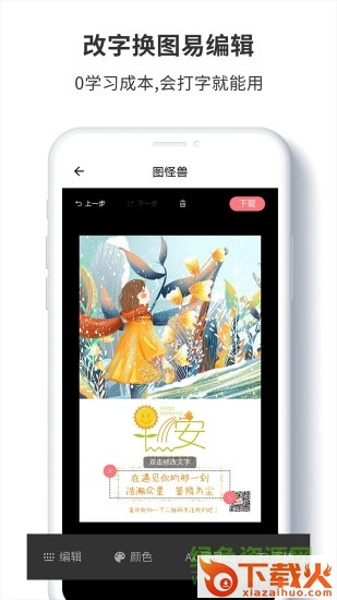 图怪兽,会打字就能用的作图神器,一款极易上手、功能强大的创意图片制作,视频制作APP,无需ps基础,也可以轻松做海报、视频、GIF动图、微商和电商素材的创意设计产品,拥有超千万用户。极易上手---3步十秒,替换文字,即可完成图片设计创作,【选模板】【替换文字】【下载保存】品质好图尽在我手!帮助企业和个人快速便捷完成营销推广。