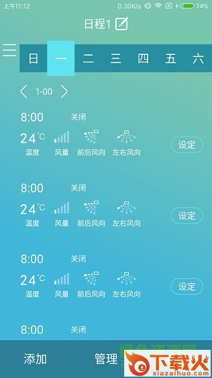 5、支持管理设定的日程,包括添加、复制设置、删除设置等,设备自动按照设置的日程进行运行;
