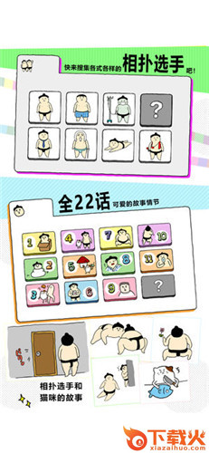 捡到相扑选手是一款Q萌的治愈系休闲手游,游戏有着简单的点击放置类玩法,玩家可以通过收集各种各样的相扑选手解锁更多剧情和玩法,清新的画面配合轻松的音乐,非常适合打磨休闲时间,感兴趣的玩家下载试试吧!