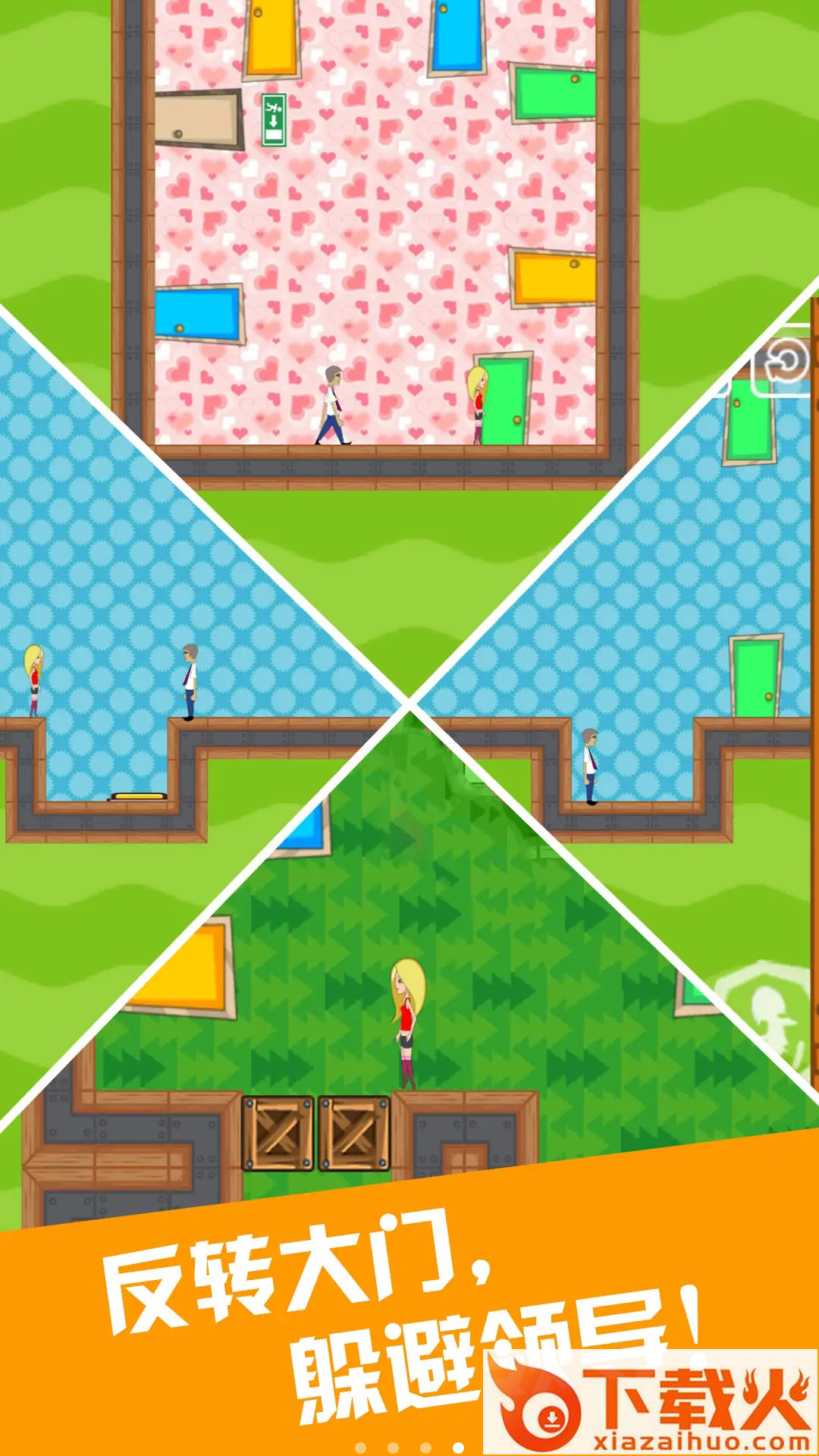 在一个又一个暗门当中往返,帮助他找到正确的出口,逃离办公室吧!