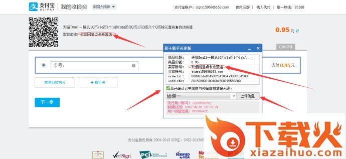 2.卖家登陆卖家付款端,获取远程并验证信息(同时保镖服务器会自动去核对是否真实付款店铺链接)(如果不属于你店铺付款链接则会提示商户绑定信息不符合,然后自动关闭软件,如果确定自己远程没有点错付款店铺上传信息,则买家使用了修改数据程序,属于骗子行为)