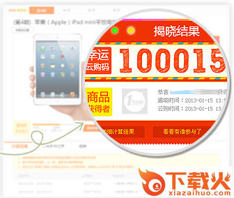 3)将这100组数值之和除以商品总需参与人次后取余数,余数加上10,000,001即为“幸运云购码”。