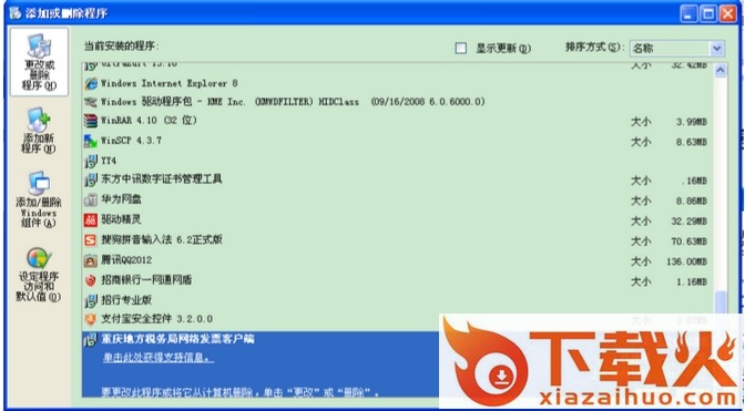 卸载网络发票客户端方式。在“控制面板”中“添加/删除程序”里面找到“重庆市地方税务局网络发票客户端”点击“删除”